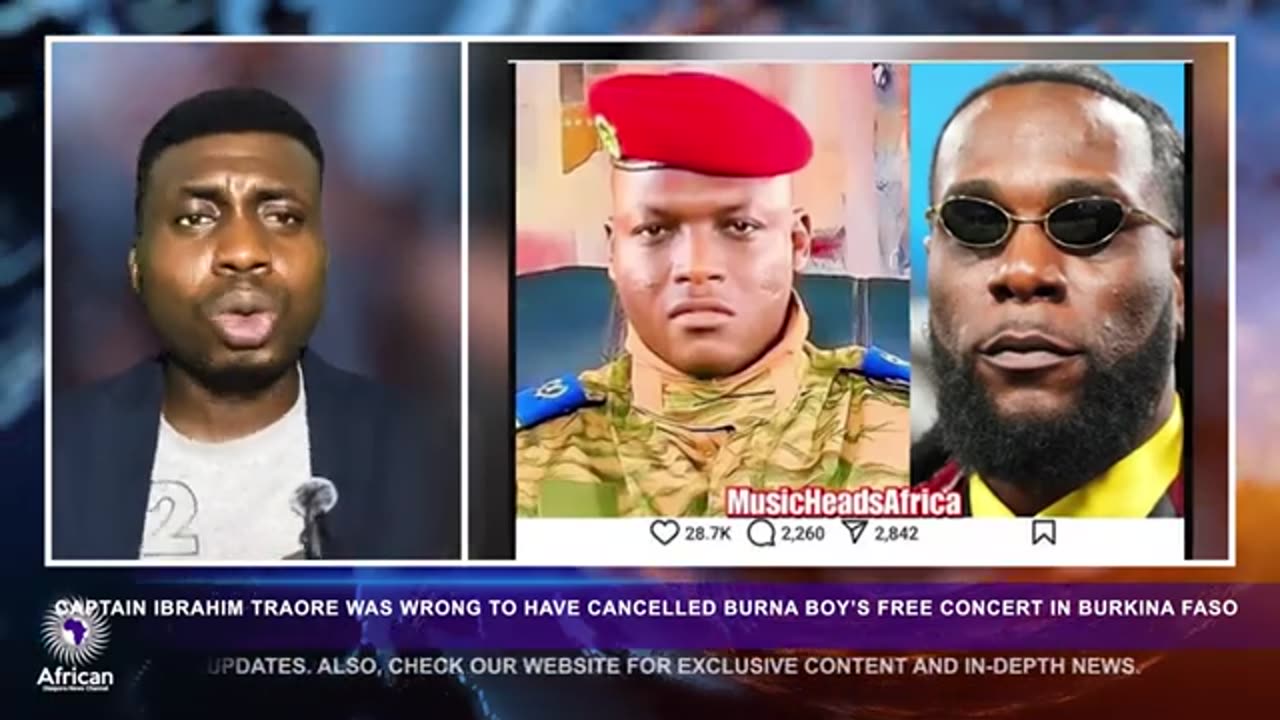 Captain Ibrahim Traore Should Not Have Cancelled Burna Boy's Free Concert in Burkina Faso