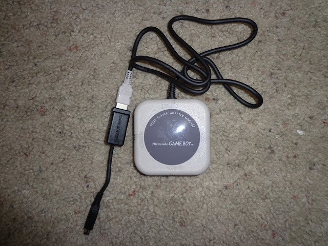 If you're familiar with all this hardware, you might be wondering how I managed to connect a Four Player Adapter to the Game Boy Player when the adapter has a fat plug on the end that only fits an original model Game Boy (like the GBA, the Game Boy Player only supports the smaller Game Boy Pocket/Color link cable, and of course, the GBA link cable).